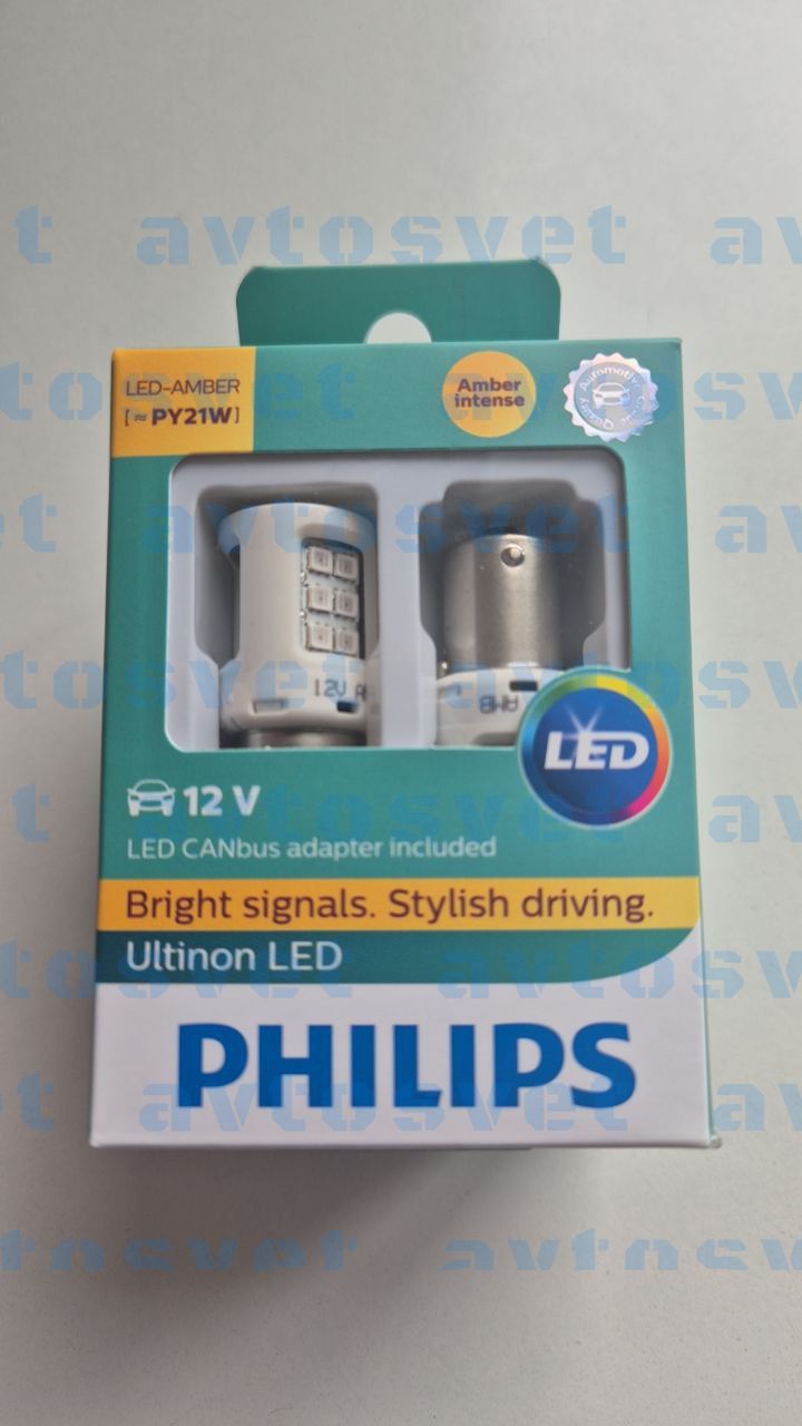 Лампи поворотні жовті led PHILIPS 11498ULAX2 PY21W LED 12V + Smart CAN bus X2