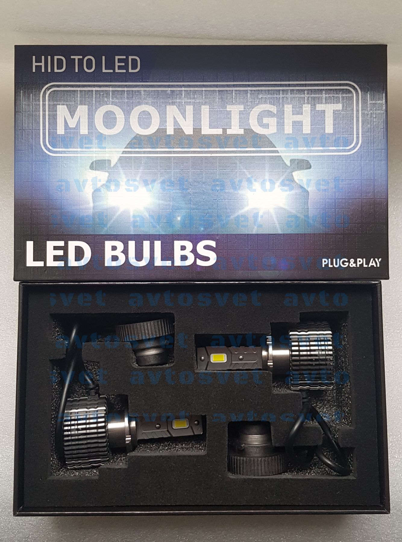 Світлодіодні лампи Moonlight D8 розроблені для миттєвого апгрейду оригінальної оптики. Головна особливість — повна відповідність конструкції та електроніки заводській системі освітлення.