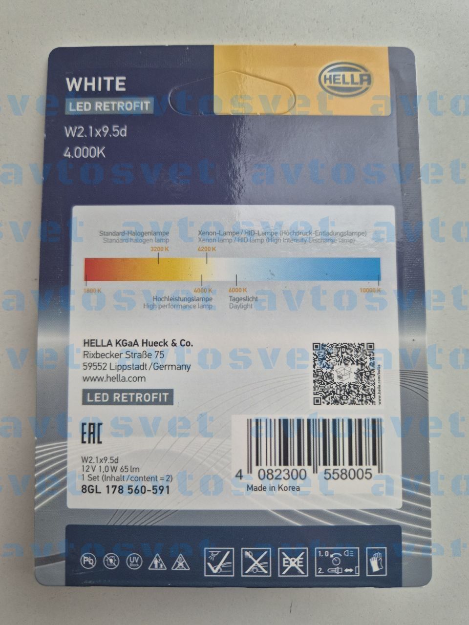 Світлодіодні лампи HELLA LED Retrofit W5W (T10) 8GL 178 560-591